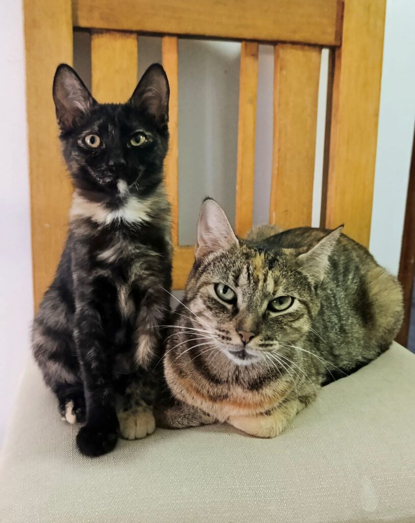 2 pitbull que llegaron al refugio con un hemoparásito el cuál las tenia gravemente afectadas, con una anemia muy avanzada y miasis (gusanos insertados en la piel). Después de un largo tratamiento y mucho amor, hoy el semblante de Kiara y Greta es muy diferente, sus ojos vuelven a confiar y su colita se vuelve a mover de felicidad.